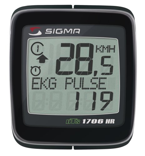 The BC 1706 HR with DTS is the perfect solution for all fitness-oriented cyclists. DTS stands for digital transmission system (Speed and HR), providing zero cross talk with other computers and ensuring that the data on the computer is your own. The current, maximum and average heart rate are measured as precisely as an ECG for precise training control. Both the speed and heart rate are coded and transferred to the bicycle computer by digitally coded radio waves. All bike, time and heart rate values are easily and clearly read from the 3-line display. Handlebar and stem mount. 17 Functions Wireless Speed + Heart Rate: speed, avg speed, max speed, speed comparison, trip distance, total distance bike 1, total distance bike 2, total distance bike 1 + 2, clock, ride time, low battery indicator, two bike programmable, total ride time bike 1, total ride time bike 2, total ride time bike 1+ 2, memory back up function, Heart Rate, Avg Heart Rate, maximum Heart Rate, programmable trip segment, programmable timer.